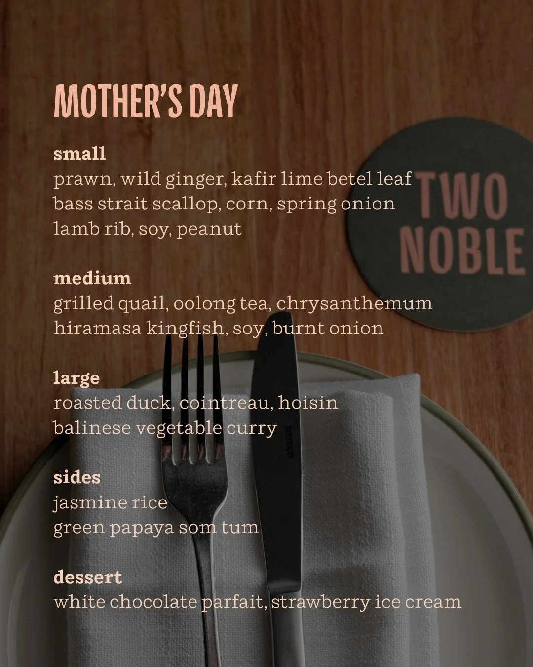 On Mother’s Day, Head Chef Rita Trinh will draw influence from all over Asia for this delicious four course chef’s banquet.